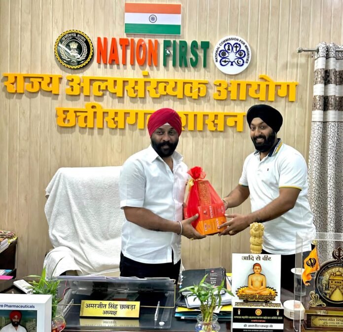 अल्पसंख्यक आयोग के अध्यक्ष अमरजीत छाबड़ा से मंडल अध्यक्ष मनप्रीत ब्रोका ने की सौजन्य भेट