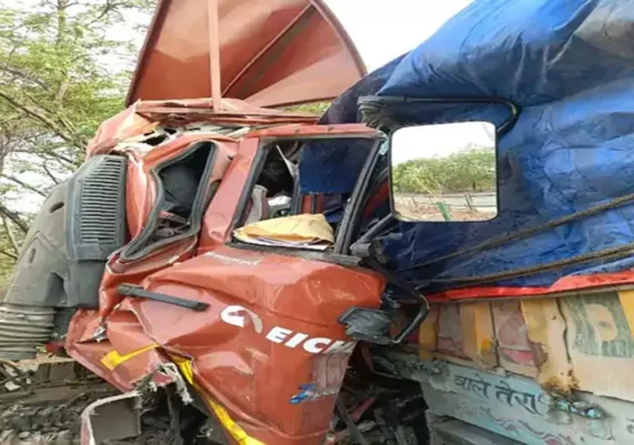 खड़े ट्रक से टकराई कंटेनर, चालक की दर्दनाक मौत