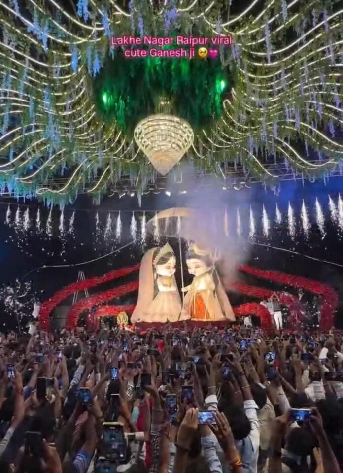 रायपुर। राजधानी रायपुर में इस बार कई भव्य और आकर्षक गणेश प्रतिमाओं को स्थापित किया गया है। देर शाम होते ही राजधानी की सड़कों पर बप्पा को देखने वालों की झमाझम भीड़ ट्रैफिक को बढ़ा दे रही है। राजधानी के लाखेनगर, संतोषीनगर, गुढ़ियारी, MG रोड, भाटागांव, टिकरापारा, रायपुरा चौक समेत शहरी इलाकों में बप्पा की कई आकर्षक मूर्तियाँ स्थापित की गई है। जिसे देखने के लिए सैकड़ों श्रद्धालु पंडालों पर पंहुच रहे है।