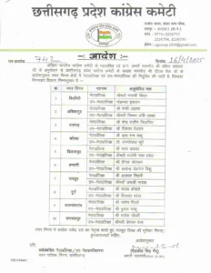 छत्तीसगढ़ प्रदेश कांग्रेस कमेटी ने निगमों में नेता प्रतिपक्ष एवं उप नेता प्रतिपक्ष की नियुक्ति की
