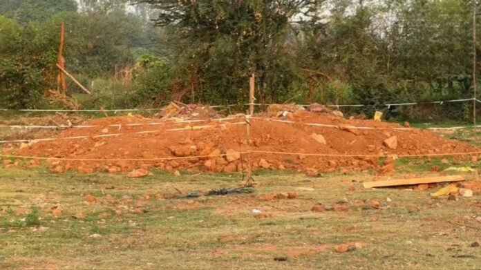कोंडागांव।शहर के हाउसिंग बोर्ड कॉलोनी के पीछे खेत में एक लाश मिलने से इलाके में हड़कंप मच गया है. मृतक की पहचान सुरेश चौहान के रूप में हुई है. सुरेश टेंट संचालक हैं. हत्या के बाद शव को जमीन मिट्टी के मलबे में दफना दिया गया था. पुलिस में मृतक के शनिवार से लापता होने की शिकायत दर्ज कराई गई थी।