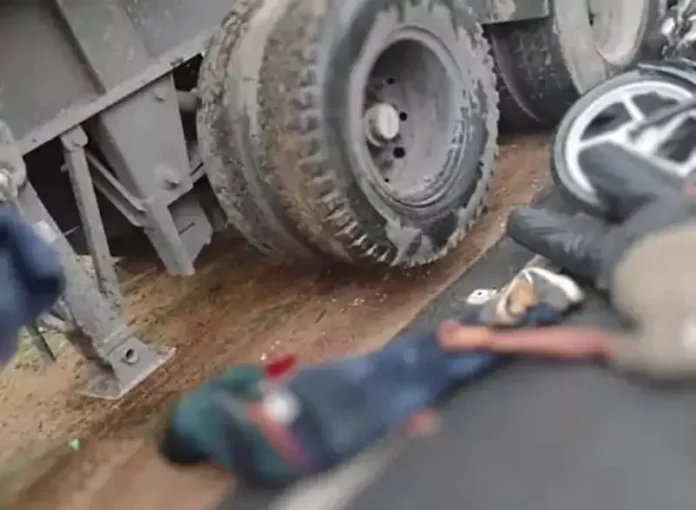 सूरजपुर। सूरजपुर के ग्राम नेवरा में एक कोयला लदा ट्रेलर और बाइक की टक्कर में एक युवक की मौत हो गई। दूसरा व्यक्ति घायल हो गया। हादसा तब हुआ जब भैयाथान की ओर से आ रहा ट्रेलर ओवरटेक करने का प्रयास कर रहा था। घटना सूरजपुर थाना क्षेत्र के नेवरा गांव की है। टक्कर इतनी जबरदस्त थी कि बाइक सवार युवक की मौके पर ही मौत हो गई। बाइक पर सवार दूसरा व्यक्ति गंभीर रूप से घायल हुआ है। स्थानीय लोगों ने बताया कि हादसे के बाद इलाके में अफरा-तफरी का माहौल है। पुलिस मामले की जांच कर रही है। मृतक की अभी तक पहचान नहीं हो पाई है।