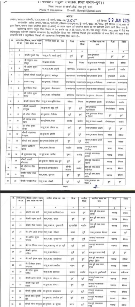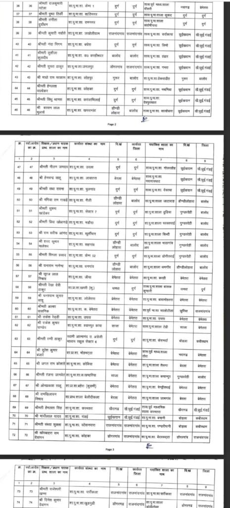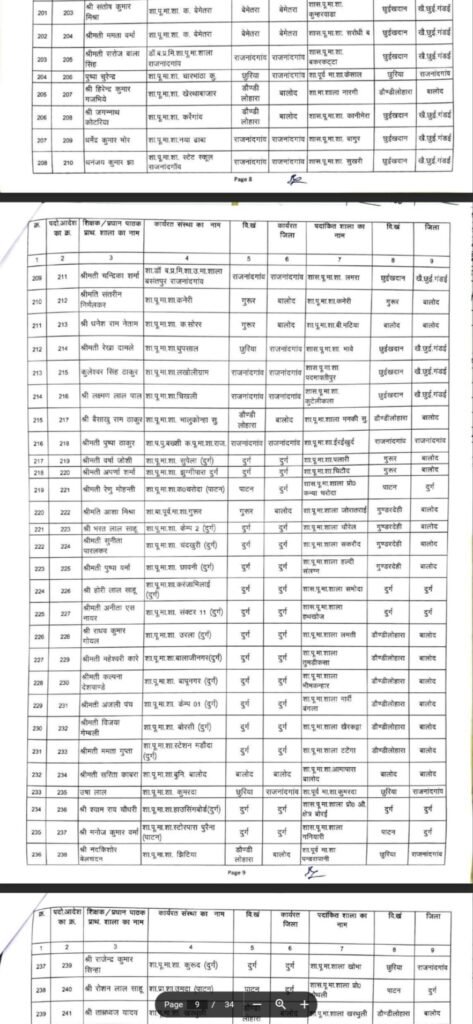 दुर्ग संभाग ई संवर्ग शिक्षकों का मिडिल हेडमास्टर प्रमोशन ऑर्डर जारी