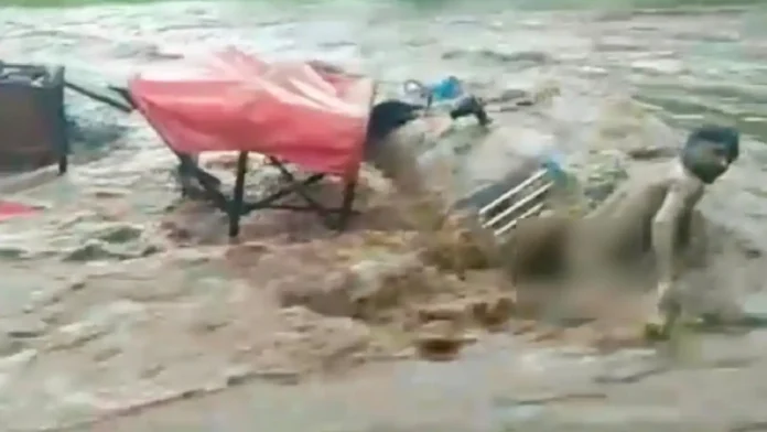 कवर्धा। छत्तीसगढ़ में लगातार हो रही बारिश अब आफत बनती जा रही है। कवर्धा जिले में घुमाछापर गांव के पास बारिश के कारण टमरू नाले में का एकाएक जलस्तर बढ़ गया, जिससे नाले में रेत से भरी एक ट्रैक्टर-ट्रॉली अचानक आई बाढ़ की चपेट में आ गई। इस दौरान ट्रॉली में सवार 7 मजदूर भी बह गए। बताया जा रहा है कि किसी तरह सभी मजदूरों ने तैरकर अपनी जान बचा सकें।