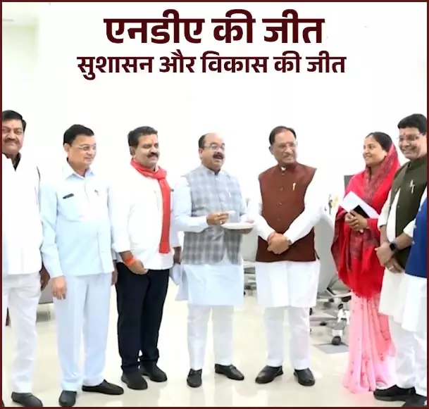रायपुर। सीएम साय ने कहा, बिहार विधानसभा चुनाव में एनडीए को मिल रही ऐतिहासिक बढ़त जनविश्वास की बड़ी जीत है। एनडीए के प्रति जनता का बढ़ता विश्वास माननीय प्रधानमंत्री नरेंद्र मोदी के कुशल नेतृत्व में विकास, सुशासन और सकारात्मक राजनीति की जीत है। आज मंत्रिमंडल के साथियों के साथ इसकी खुशियां साझा करते हुए मन में एक ही भावना थी, सुशासन पर जनता का यह विश्वास हमें और ज़िम्मेदार बनाता है। बता दें कि बिहार विधानसभा चुनाव में राष्ट्रीय जनतान्त्रिक गठबंधन ( एनडीए) को रुझानों में अजेय बढ़त मिलने पर मुख्यमंत्री विष्णु देव साय ने मंत्रीमण्डल के सदस्यों को मिठाई खिलाकर जीत की बधाई दी। बिहार विधानसभा चुनाव में भारतीय जनता पार्टी (भाजपा) नीत एनडीए (राष्ट्रीय जनतांत्रिक गठबंधन) ने फिर से परचम लहराया है। चुनाव आयोग के शुरुआती रुझानों में एनडीए ने 195 सीटों पर बढ़त हासिल की है। चुनाव आयोग के रुझानों के अनुसार, भाजपा ने दोपहर साढ़े 12 बजे तक 87 सीटों पर बढ़त बनाए रखी, जो सबसे बड़ी पार्टी के रूप में उभरी है। इसके अलावा भाजपा की सहयोगी जदयू 79 सीटों पर आगे रही। एनडीए के अन्य घटक दलों में शामिल लोक जनशक्ति पार्टी (रामविलास) को 21, हिंदुस्तानी आवाम मोर्चा को पांच और राष्ट्रीय लोक मोर्चा को तीन सीटों पर बढ़त मिली। यही रुझान नतीजों में तब्दील होते हैं तो यह बिहार में एनडीए की 2010 के बाद दूसरी सबसे बड़ी जीत होगी।