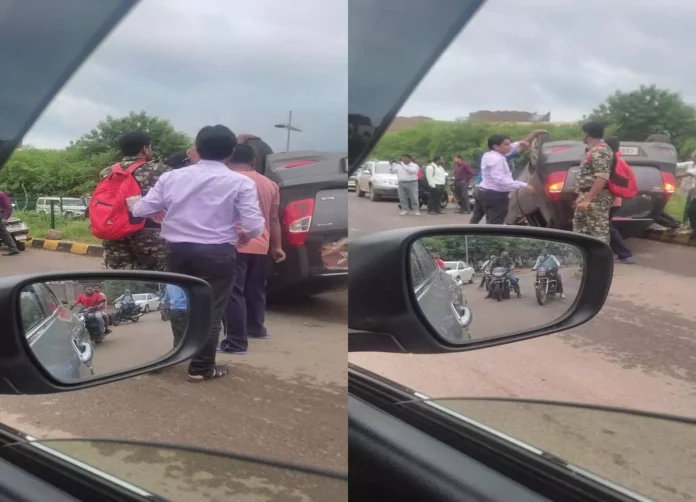 रायपुर। राजधानी रायपुर के राखी थाना क्षेत्र में शनिवार शाम एक बड़ा सड़क हादसा हो गया। नवा रायपुर स्थित इंद्रावती और महानदी भवन के बीच सड़क पर तेज रफ्तार से जा रही एक कार अचानक अनियंत्रित होकर औंधे मुंह पलट गई। हादसा इतना जोरदार था कि आसपास के लोगों में हड़कंप मच गया और देखते ही देखते मौके पर भीड़ जुट गई। प्रत्यक्षदर्शियों ने बताया कि कार अचानक सड़क किनारे डिवाइडर से टकराई और पलटकर उलटी हो गई। हादसे के बाद मौके पर अफरातफरी का माहौल बन गया। कार में सवार लोगों की स्थिति को लेकर अभी तक कोई स्पष्ट जानकारी नहीं मिल पाई है। स्थानीय लोग तुरंत मौके पर पहुंचे और पुलिस को सूचना दी। सूचना मिलते ही राखी थाना पुलिस मौके पर पहुंची और कार को सड़क से हटाने की कार्रवाई शुरू की। हादसे की वजह का पता लगाया जा रहा है। पुलिस ने बताया कि फिलहाल घायलों या मृतकों के संबंध में जानकारी की पुष्टि नहीं हुई है। जांच के बाद ही स्थिति स्पष्ट हो सकेगी। नवा रायपुर में इंद्रावती और महानदी भवन के बीच यह इलाका अत्यधिक व्यस्त मार्गों में गिना जाता है। शाम के समय इस मार्ग पर वाहनों की आवाजाही रहती है। ऐसे में कार पलटने की घटना से कुछ देर के लिए यातायात भी प्रभावित हुआ। फिलहाल राखी पुलिस मामले की जांच कर रही है और कार सवारों के बारे में जानकारी जुटाई जा रही है।