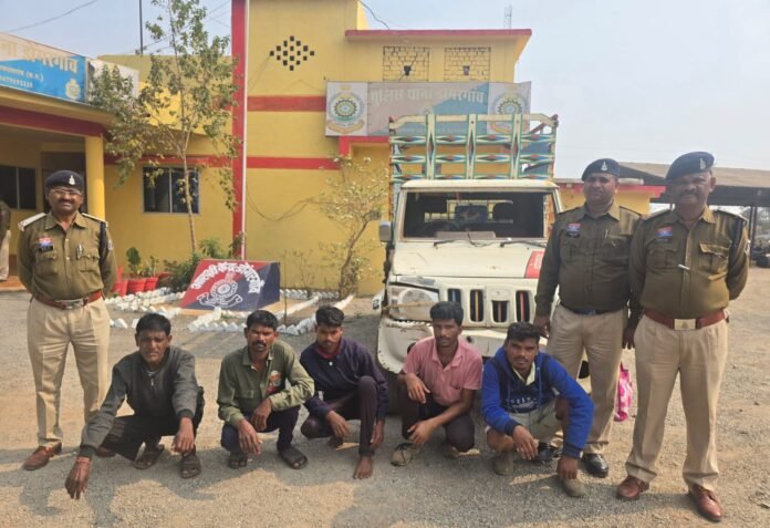 दिनांक 03 फरवरी 2026 की रात्रि गश्त के दौरान पुलिस टीम को सूचना मिली कि एक सफेद रंग की बोलेरो पिकअप में गौवंश को अवैध रूप से भरकर महाराष्ट्र की ओर ले जाया जा रहा है।