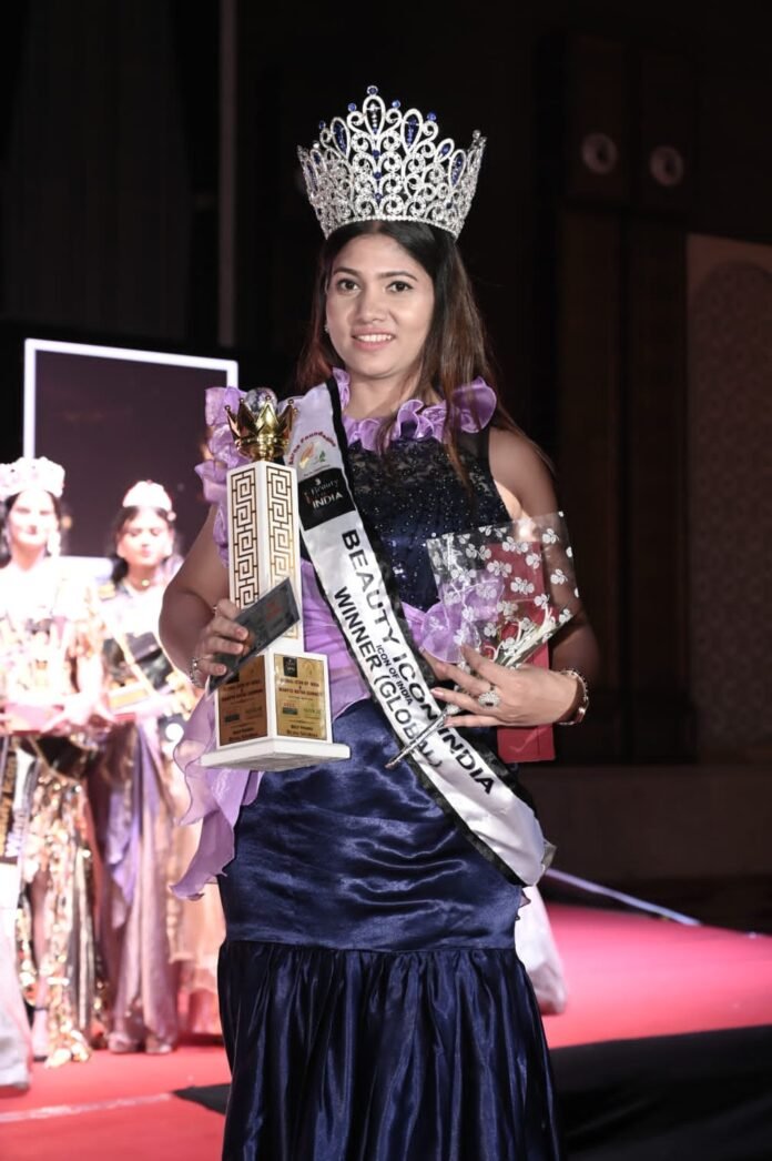 विनर मिस ब्यूटी आइकॉन इंडिया मनीषा व्यास, 1st रनर अप कुसुम वाल्डे, दूसरी रनर अप रिंकी बक्स्ला I