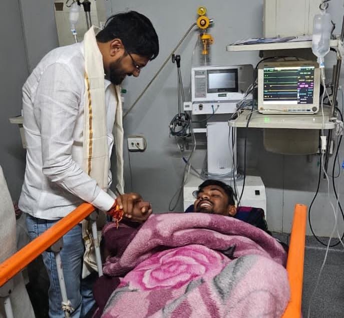कुसुमकसा( हितेश डोंगरे)।भारतीय जनता पार्टी कुसुमकसा के युवा मोर्चा के अध्यक्ष सचिन साहू का कुछ दिन पहले अपने किसी निजी कार्यो से सिकोसा गये हुवे थे। जहां सिकोसा से अपने निवास घोटिया आते समय भाजपा युवा मोर्चा के अध्यक्ष सचिन साहू का एक्सीडेंट हुवा जहां सचिन साहू गभीर रूप से घायल हो गए। जहाँ उनके उपचार के तत्काल प्रभाव रायपुर के निजी हॉस्पिटल में रिफर किया जहां अभी वर्तमान में उनका उपचार जारी है। इस घटना की जानकारी भाजपा युवा मोर्चा के प्रदेश अध्यक्ष राहुल टिकरिया को मिलते ही तत्काल भाजपा युवा मोर्चा अध्यक्ष सचिन साहू से मिलने हॉस्पिटल पहुँचे जहा सचिन साहू का हाल चाल जाना व डॉक्टरों से उनके स्वास्थ के बारे में जानकरी ली। भाजपा युवा मोर्चा के प्रदेश अध्यक्ष राहुल टिकरिया ने इस पूरे मामले की जानकारी लेते हुवे बताया कि अभी सचिन साहु स्वस्थ है वो बहुत जल्दी ही हम सब के बीच स्वस्थ होकर अपने कार्य झेत्र में लौटेंगे। साथ ही भाजपा युवा मोर्चा प्रदेश अध्यक्ष राहुल टिकरिया ने सचिन साहु के उत्तम स्वास्थ्य की मंगल कामनाएं भी की है।