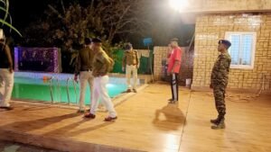 राजनांदगांव ।पुलिस अधीक्षक महोदया सुश्री अंकिता शर्मा (भा0पु0से0) के निर्देशन व अतिरिक्त पुलिस अधीक्षक महोदय श्री कीर्तन राठौर के मार्गदर्शन व नगर पुलिस अधीक्षक महोदय श्री अलेक्जेंण्डर के पर्यवेक्षण में अपराध के रोकथाम व नियंत्रण तथा काननू व शांति व्यवस्था बनाये रखने हेतु असामाजिक तत्वो के खिलाफ सतत अभियान कार्यवाही तथा चलाए जा रहे अभियान के तहत नगर पुलिस अधीक्षक अलेक्जेंडर किरो व सायबर सेल राजनांदगांव की टीम गठित कर मनगटा स्थित रिसार्ट में लगातार डीजे बजने एवं शराब पिलाने की शिकायत पर रिसार्टो में औचक छापेमारी की कार्यवाही की गयी छापेमारी दौरान अवैध गतिविधियॉ संचालित नही होना पाया गया।