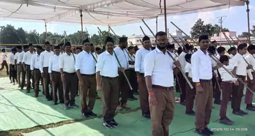 मानपुर। आदिवासी क्षेत्र बाहुल्य विकासखण्ड में राष्ट्रीय स्वयं सेवक संघ ने अपने 100 वर्ष पूरे होने पर विजयादशमी पर्व मनाया।संघ के कार्यकर्ताओं ने संघ के स्थापना प्रमुख डॉक्टर केशव बलिराम हेडगेवार की तैलचित्र पर माल्यार्पण कर पथ संचलन व शस्त्र की पूजा अर्चना की। पथ संचलन इन्द्र प्रस्थ स्टेडियम से शुरू कर नगर भ्रमण किया। ग्रामीणों ने चौक.चौराहों पर पुष्प वर्षा कर स्वागत किया। मुख्य प्रवक्ता जितेन्द्र शर्मा राजिम शाह उमेन्द्र देवांगन डीआर आंचला शिवचरण डोंगरे जीके साहू एस कोमरे अनुज तुलावी राजू टांडिया ओम प्रकाश चांडक प्रकाश मिश्रा मदन साहू डब्बू चांडकए शैलेन्द्र मिश्राए ओम प्रकाश चांडकए राजू टांडियाए प्रकाश मिश्रा आदि मौजूद थे।