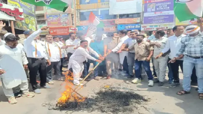 विरोध प्रदर्शन में युवा कांग्रेस और महिलाओं ने बढ़ती महंगाई के विरोध में मोदी सरकार के खिलाफ नारेबाजी की। इस दौरान पुलिस जवानों की मौजूदगी में कांग्रेस कार्यकर्ताओं ने प्रधानमंत्री का पुतला दहन कर केंद्र सरकार के खिलाफ अपना विरोध दर्ज कराया। जिला शहर कांग्रेस कमेटी अध्यक्ष जितेंद्र मुदलियार ने कहा भाजपा सरकार जनता को राहत देने के बजाय महंगाई का बोझ बढ़ा रही है।गैस सिलेंडर की कीमतों में वृद्धि ने आम परिवारों की कमर तोड़ दी है। कांग्रेस सरकार से तत्काल बढ़ी हुई दरें वापस लेने की मांग करती है। प्रदर्शन में पूर्व छन्नी साहू, रमेश राठौर, रूपेश दुबे, डॉ आफताब आलम, कमलजीत सिंह पिंटू, मामराज अग्रवाल, राकेश जोशी, अशोक फड़नवीस, अशोक पंजवानी, अनीस खान, चेतन भानुशाली, टिकेश साहू, अमर झा, हरिनारायण धकेता, विनय झा, मनीष गौतम, अमित अग्रवाल, अमित कुशवाहा सहित अन्य मौजूद थे।