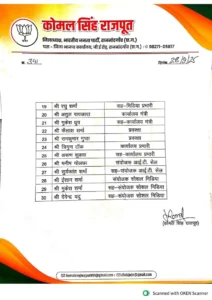 इसी के साथ-साथ पुराने और अनुभवी मीडिया प्रभारी अमर ललवानी को एक बार फिर मीडिया प्रभारी के रूप में प्रभार सौंपा गया है । वही सोशल मीडिया की बात करें तो सोशल मीडिया में एक्टिव रहने वाले मुकेश शर्मा को भी सोशल मीडिया का प्रभार सौंपा गया है। वही तरुण लहरवानी को जिला उपाध्यक्ष की जिम्मेदारी दी है। बता करे मंत्री की तो अभिषेक सिंह के करीबी माने जाने वाले ऋषि देव चौधरी को मंत्री पद की महती जिम्मेदारी सौंपी गई है। वही पहले से आईटी सेल सम्भाल रहे मनीष गोलछा को एक बार फिर आईटी सेल की जिम्मेदारी दी गई है। वही जिला भाजपा की सूची में 4 महिलाओं को भी महत्वपूर्ण जिम्मेदारी सौंपी गई है । जिसमें 3 उपाध्यक्ष एवं 1 मंत्री पद से नवाजा गया है ।