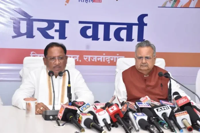 राजनांदगांव । मुख्यमंत्री विष्णु देव साय ने राजनांदगांव प्रवास के दौरान जिला पंचायत सभाकक्ष में सुशासन तिहार 2025 के संबंध में पत्रकार-वार्ता ली। इस दौरान विधानसभा अध्यक्ष डॉ. रमन सिंह, सांसद संतोष पाण्डेय, महापौर मधुसूदन यादव विशेष रूप से उपस्थित थे।