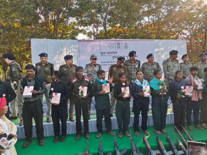 समारोह में डीजीपी अरुण देव गौतम, एडीजी (नक्सल ऑपरेशन) विवेकानंद, आईजी राजनांदगांव रेंज अभिषेक शांडिल्य, आईटीबीपी डीआईजी अनवर इलाही सहित कई वरिष्ठ अधिकारी उपस्थित रहे। आदिवासी मज्जी समाज के लोगों ने आत्मसमर्पित नक्सलियों का स्वागत गुलाब फूल और संविधान की प्रति भेंट कर किया।