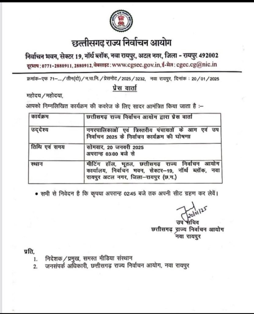Homeछत्तीसगढ़ राज्य चुनाव आयोग की प्रेसवार्ता एवं चुनाव कार्यक्रम की घोषणा आज By AG Khabar January 20, 2025 छत्तीसगढ़रायपुर भाजपा झुग्गी झोपड़ी प्रकोष्ट जिला बालोद की कार्यकारिणी की हुवी घोषणा गोविन्द शर्मा, खिलेश्वर साहू, राजू चिकवा को जिले में मिला स्थान April 16, 2026 ASI ने केस की जानकारी मांगने पर जड़े 20 थप्पड़.. पीड़ित का कान सुन्न पड़ा, कहा – तेरा सब नेतागिरी निकाल दूंगा, जेल भेजने... April 16, 2026 अब नागरिक खुद भर सकेंगे अपनी जानकारी, जनगणना 2027 में हिस्सा लेना अनिवार्य April 16, 2026 प्रदेश में बढ़ती गर्मी को देखते हुए स्कूलों में 20 अप्रैल से ग्रीष्मकालीन अवकाश April 16, 2026 भाजपा अजा मोर्चा बालोद ने डौडीलोहारा विधानसभा के ग्राम खैरवाही में हर्षोल्लास से मनाई डॉ. अम्बेडकर जयंती, जिला स्तरीय कार्यक्रम में उमड़ा जनसैलाब April 16, 2026 Share FacebookXPinterestWhatsApp Join Whatsapp Group Follow on Facebook Subcribe Youtube Previous articleअब महीने के सभी दिवसों में ट्रेजरी में बिल स्वीकार किए जाएंगेNext articleआज प्रदेश में लग जाएगी आचार संहिता…..चुनाव आयोग की प्रेस वार्ता दोपहर 2.15 बजे से Hot Topics भाजपा झुग्गी झोपड़ी प्रकोष्ट जिला बालोद की कार्यकारिणी की हुवी घोषणा गोविन्द शर्मा, खिलेश्वर साहू, राजू चिकवा को जिले में मिला स्थान ASI ने केस की जानकारी मांगने पर जड़े 20 थप्पड़.. पीड़ित का कान सुन्न पड़ा, कहा – तेरा सब नेतागिरी निकाल दूंगा, जेल भेजने... अब नागरिक खुद भर सकेंगे अपनी जानकारी, जनगणना 2027 में हिस्सा लेना अनिवार्य Load more Related Articles AG Khabar - April 16, 2026भाजपा झुग्गी झोपड़ी प्रकोष्ट जिला बालोद की कार्यकारिणी की हुवी घोषणा गोविन्द शर्मा, खिलेश्वर साहू, राजू चिकवा को जिले में मिला स्थान AG Khabar - April 16, 2026ASI ने केस की जानकारी मांगने पर जड़े 20 थप्पड़.. पीड़ित का कान सुन्न पड़ा, कहा – तेरा सब नेतागिरी निकाल दूंगा, जेल भेजने... AG Khabar - April 16, 2026अब नागरिक खुद भर सकेंगे अपनी जानकारी, जनगणना 2027 में हिस्सा लेना अनिवार्य Load more