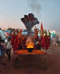 नगर में बनेगा गौ मुक्तिधाम -अमरलाल वाणी ने मांग किया कि नगर में गौ मुक्ति धाम बनाया जाए । इसके लिए जगन्नाथ स्टील की ओर से ₹5000 शंकर कुकरेजा की ओर से ₹11000 की सहयोग राशि दी गई। सांसद ने भोजराज नाग ने सरकार से सहयोग करने की अपील की तो मुख्यमंत्री की निजी सचिव सतीश कौशिक ने भी कलेक्टर से बात कर जगह उपलब्ध कराने की बात कही । इससे पूर्व शोभा यात्रा की शुरुआत नगर पालिका अध्यक्ष तोरण लाल साहू के द्वारा भगवान श्री राम मां सीता एवं भाई लक्ष्मण सहित वीर बजरंग बली की पूजा अर्चना कर किया गया। भगवान शंकर मां पार्वती और शिव गानों का अद्भुत और सजीव झांकी प्रस्तुत की गई कलाकारों ने भस्म रमा कर जटाधारी का रूप धारण किया और हाथों में त्रिशूल डमरू भूत प्रेत योगनियो का सजीव चित्रण किया । जहां किसी ने महादेव बन कर अपने गणों के साथ नृत्य किया l तो किसी ने मां काली का रूप धारण किया l अखाड़ा के टीम ने भी से आग से खेलते हुए हैरत अंग्रेज करतब दिखाये l मर्यादा पुरुषोत्तम भगवान श्री राम मां सीता भ्राता लक्ष्मण बजरंगबली के रूप में राम दरबार भी लोगों के बीच आकर्षण का केंद्र रहा । तो विशाल गोरिल्ला ने भी लोगों को आकर्षक आकर्षित किया।महाबली हनुमान के रूप में लगभग 7 से 8 फीट विशाल कद काठी के रूप में व्यक्ति ने ऐसा वातावरण बनाया कि सचमुच में महाबली हनुमान इस रैली में साक्षात प्रकट होकर रैली का हिस्सा बन गए हो ।तो छत्तीसगढ़ के मूल निवासियों की आँगा देव के अनुयायियों ने भी लोगों के मन में छत्तीसगढ़ के देवताओं के प्रति आस्था को भी सबके सम्मुख प्रस्तुत किया l जहां आंगा देव बालिकाओं के कंधे पर सवार हुए थे । शाम छ बजे से लेकर रात्रि के अंतिम पहर तक चली इस कार्यक्रम में दल्ली राजहरा और आसपास के ग्रामीण अंचलों के दर्शको ने भी इस जिले के सबसे बड़े आयोजन का आनंद लेने के लिए दल्ली राजहरा पहुंचे थे । जहां लगभग 10,000 से भी अधिक दर्शकों ने इसका आनंद लिया । रैली हनुमान मंदिर ( घोड़ा मंदिर) वार्ड क्रमांक 13 में नगर पालिका अध्यक्ष तोरण लाल साहू के द्वारा भगवान श्री राम मां सीता और भाई लक्ष्मण की पूजा अर्चना कर प्रारंभ की गई। जो की शहीद अस्पताल चौक से होते हुए शहीद वीर नारायण सिंह चौक से गुप्ता चौक पहुंची जहां दर्शकों के लिए लाइट शो एवं अतिथि उद्बोधन तथा सम्मान समारोह का आयोजन किया गया था। गुप्ता चौक में उपस्थित सभी अतिथियों का यादगार प्रतीक चिन्ह देखकर सम्मानित किया गया ।
