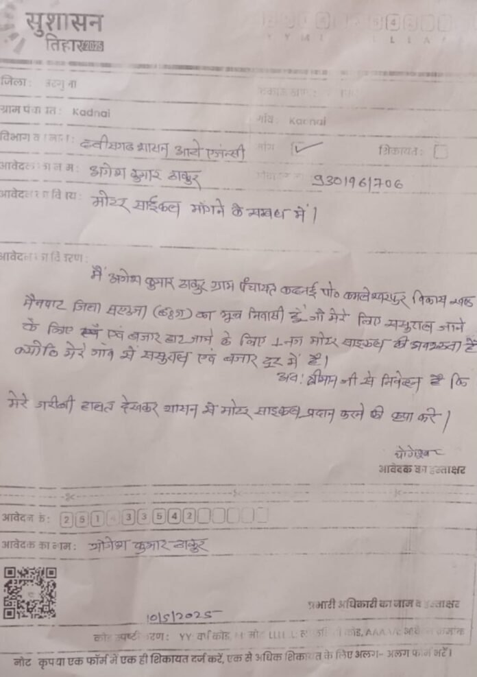 सुशासन तिहार में युवक ने ससुराल जाने के लिए मोटरसाइकिल की मांग की