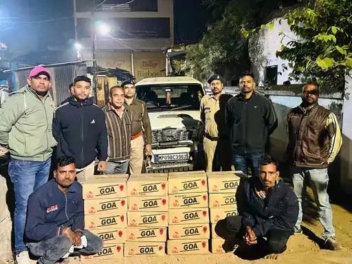 आबकारी उप निरीक्षक अनिल सिंह और राजकुमार कुर्रे के नेतृत्व में टीम ने सफेद रंग की महिंद्रा स्कॉर्पियो (MP 09 BC-3962) से 20 पेटियों में रखी 1000 पाव गोवा व्हिस्की बरामद की। यह शराब ‘केवल मध्य प्रदेश राज्य में विक्रय हेतु वैध’ लेबल के साथ अवैध रूप से ले जाई जा रही थी। आरोपियों के खिलाफ आबकारी अधिनियम 1915 की धारा 34(2), 36 और 59(क) के तहत मामला दर्ज कर गिरफ्तार किया गया।