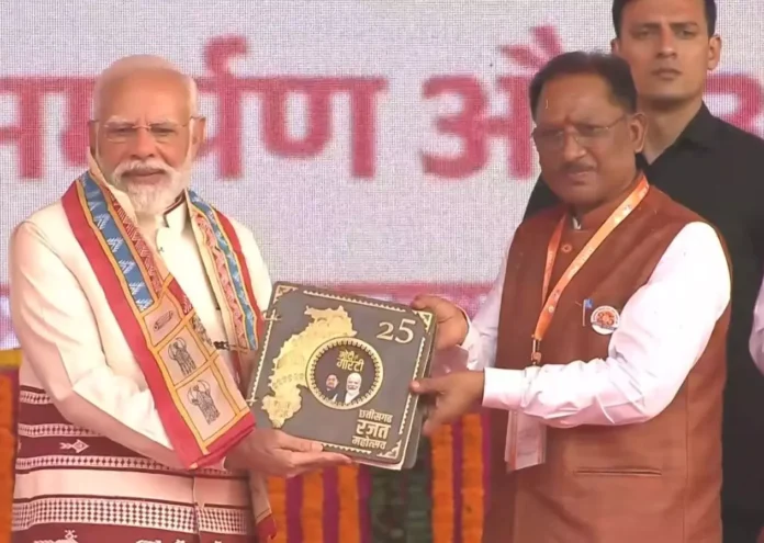 नवा रायपुर। छत्तीसगढ़ राज्य स्थापना की 25वीं वर्षगांठ के अवसर पर आयोजित राज्योत्सव कार्यक्रम में प्रधानमंत्री नरेंद्र मोदी ने ‘कोसा कॉफ़ी टेबल बुक’ का विमोचन किया। जनसंपर्क विभाग का यह विशेष प्रकाशन प्रधानमंत्री श्री मोदी के मार्गदर्शन में छत्तीसगढ़ में हुए जन-कल्याणकारी कार्यों और विकास यात्रा का विस्तृत दस्तावेज़ प्रस्तुत करता है। मुख्यमंत्री विष्णु देव साय ने कहा कि यह कॉफी टेबल बुक प्रधानमंत्री श्री मोदी की गारंटी के अंतर्गत पूरे हुए विकास कार्यों का प्रमाण है। इसमें उन योजनाओं और पहल का समावेश है, जिन्होंने छत्तीसगढ़ की धरती पर विश्वास, विकास और पारदर्शिता का नया अध्याय लिखा है। ‘मोदी की गारंटी’ — विकास के सशक्त उदाहरण ‘कॉफी टेबल बुक’ में प्रमुख रूप से प्रधानमंत्री आवास योजना के अंतर्गत गरीब परिवारों को मिले आवास, किसानों को दी गई धान बोनस राशि, कृषक उन्नति योजना के तहत हुए कृषि सुधार, तथा लोक सेवा आयोग (PSC) परीक्षा मूल्यांकन प्रणाली में लायी गई पारदर्शिता जैसे अनेक जनहितकारी सुधारों का विस्तारपूर्वक विवरण शामिल है। जन-कल्याण से सुशासन तक की यात्रा ‘कॉफ़ी टेबल बुक’ में प्रधानमंत्री श्री नरेंद्र मोदी के नेतृत्व में संचालित विभिन्न केंद्रीय योजनाओं – जैसे प्रधानमंत्री किसान सम्मान निधि, उज्ज्वला योजना, हर घर जल मिशन, प्रधानमंत्री ग्राम सड़क योजना, और डिजिटल प्रशासनिक सुधार – के माध्यम से छत्तीसगढ़ में आए सकारात्मक परिवर्तनों को चित्रों और आँकड़ों के माध्यम से जीवंत रूप में प्रस्तुत किया गया है। राज्य की प्रगति का जीवंत चित्रण यह पुस्तक न केवल योजनाओं की जानकारी देती है, बल्कि यह बताती है कि किस प्रकार केंद्र और राज्य सरकार के समन्वय से आम नागरिकों का जीवन बदला है। ग्रामीण विकास, महिला सशक्तिकरण, युवाओं के अवसर, स्वास्थ्य सेवाओं के विस्तार और प्रशासनिक पारदर्शिता के क्षेत्र में हुए कार्यों को विशेष रूप से रेखांकित किया गया है। मुख्यमंत्री श्री विष्णु देव साय ने इस अवसर पर कहा कि यह ‘कॉफी टेबल बुक’ छत्तीसगढ़ के नागरिकों के लिए गर्व का विषय है, क्योंकि यह राज्य की 25 वर्ष की उपलब्धियों और प्रधानमंत्री श्री मोदी की विकासोन्मुख दृष्टि का प्रतीक है। उन्होंने कहा कि यह पुस्तक आने वाली पीढ़ियों के लिए ‘विकसित छत्तीसगढ़ 2047’ के सपने की प्रेरणा बनेगी।